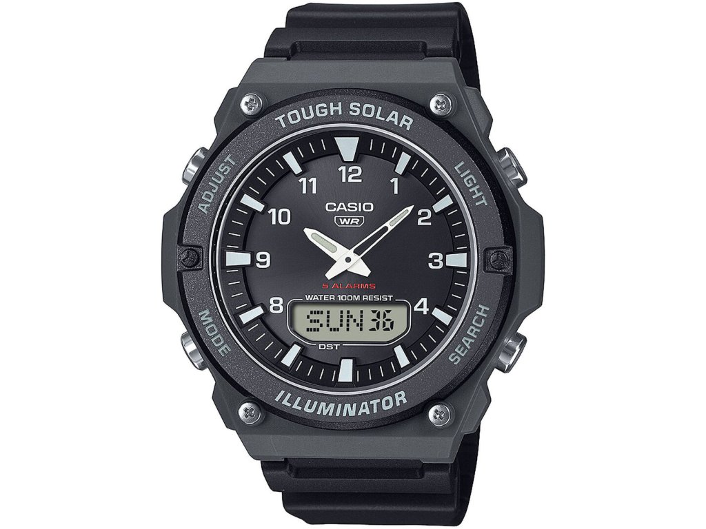 Pánské hodinky Casio Colection AQ S820W-1A jsou vyrobeny z černého plastu, díky němuž jsou velmi lehké a odolné se solárním dobíjením. Na tmavém ciferníku vynikají ručičky a indexy. Tento model nabízí širokou škálu funkcí, které lze využít jak během denního nošení, tak při sportu.