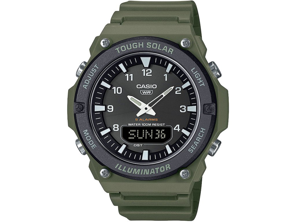 Sportovní pánské hodinky CASIO model AQ S820W-3B jsou zeleno-černé barvy. Analogové-digitální hodinky jsou vysoce odolné vůči vodě - 100M, možnost plavání. Funkce: