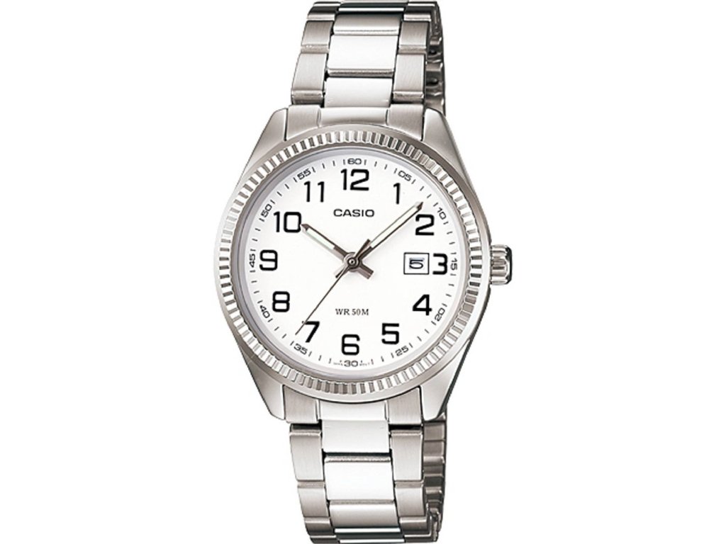 Dámské hodinky LTP 1302PD - 7B kulatého tvaru na kovovém tahu s výraznými, čitelnými symboly a jednoduchou datumovkou.