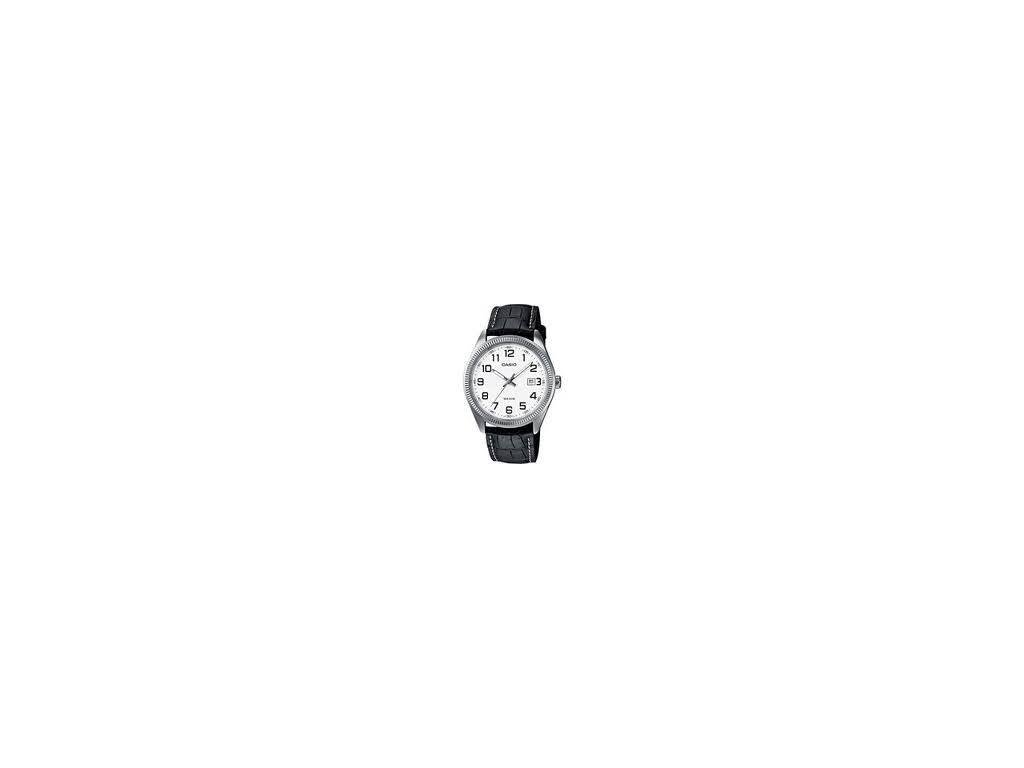 Pánské hodinky Casio MTP 1302PL-5A kulatého tvaru na koženém řemínku s jednoduchou datumovkou.