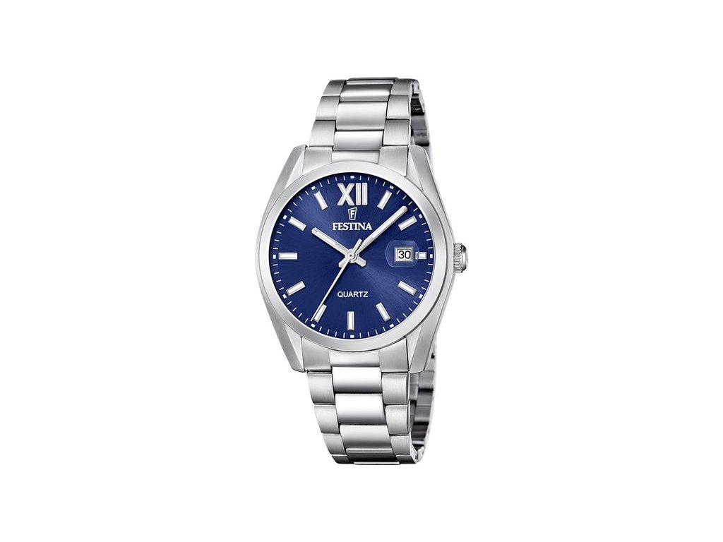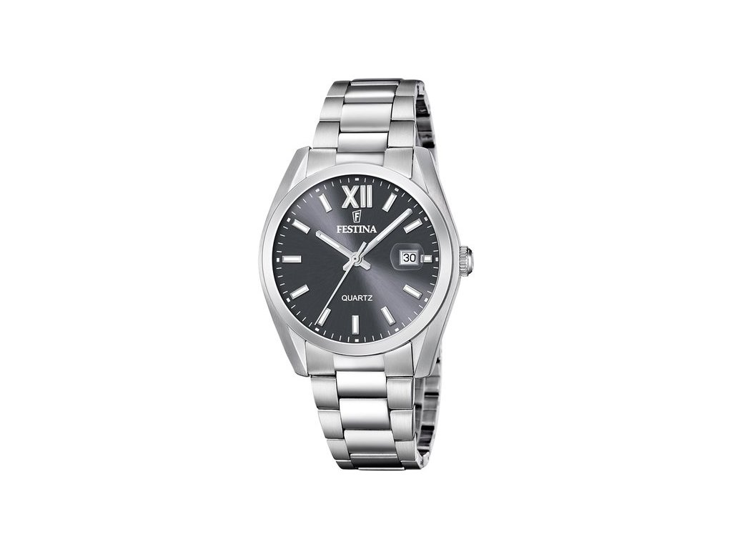 Hodinky z řady FESTINA Classics 20707/7 s kovovým ocelovým tahem, výraznými symboly a jednoduchou datumovkou.