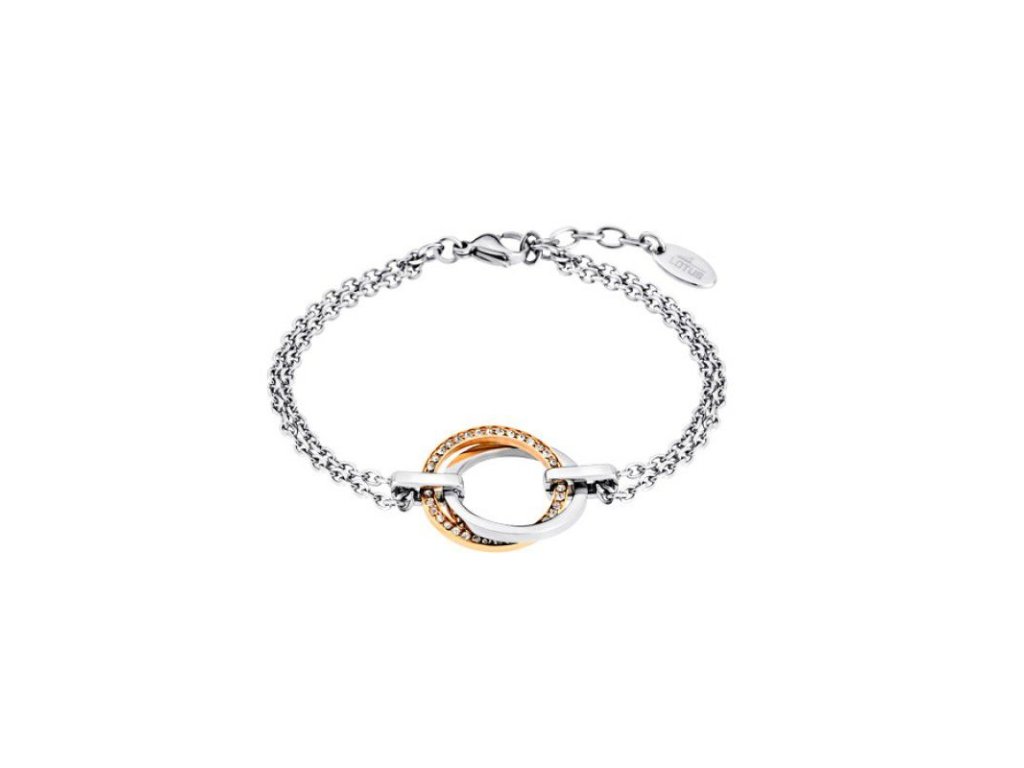 Ocelové visací náušnice LOTUS LS1780-4/2, závěs ve tvaru 2 kruhů (jeden zlacený kruh s krystaly po obvodu), zapínání na puzetu, délka náušnice vč. zapínání 22mm, šířka 20mm. Možnost kombinovat s náhrdelníkem ORE00391 a náramkem ON00526.