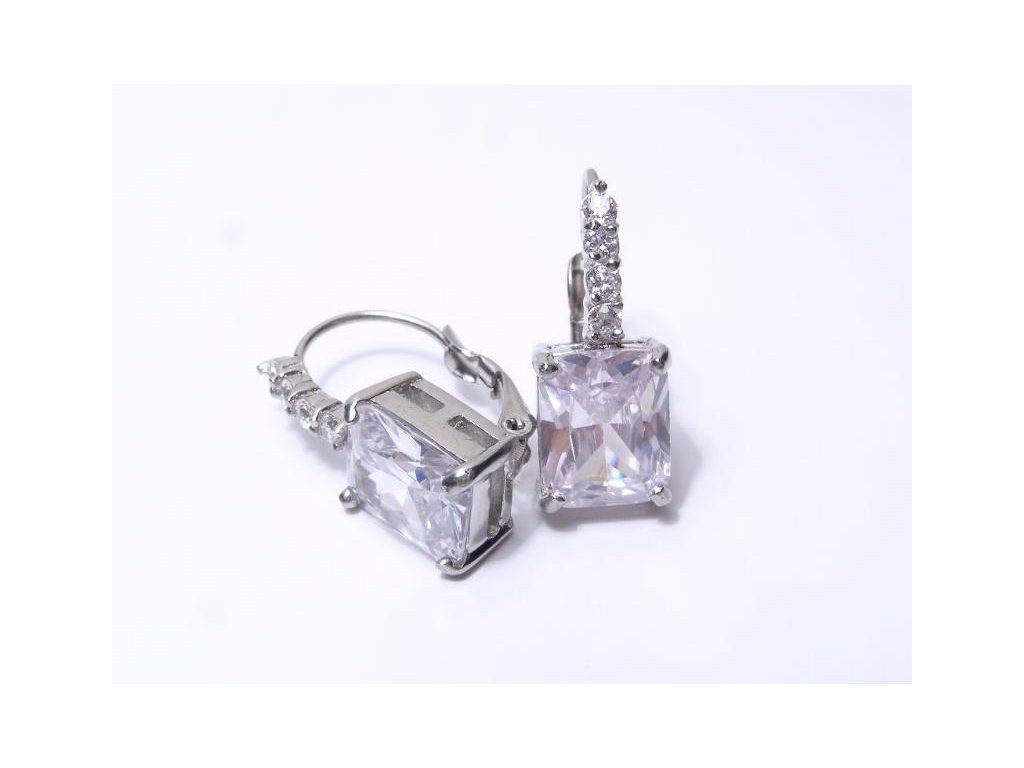 Ocelové náušnice na francouzské zapínání-ozdobené jedním bílým kulatým krystalem-8mm a malými krystaly nad ním.