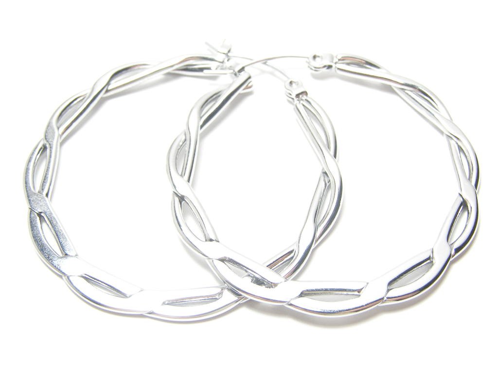 Ocelové náušnice-proplétané kruhy, průměr 38mm, zapínání na háček.
