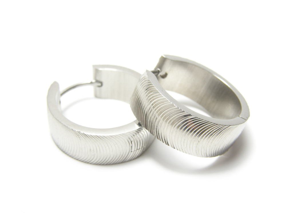Ocelové náušnice kruhy, šířka náušnice 5mm, průměr 18mm.