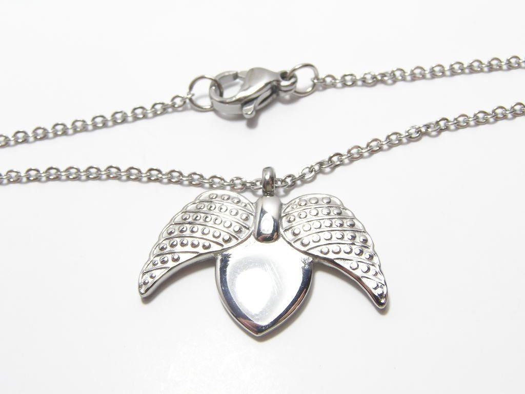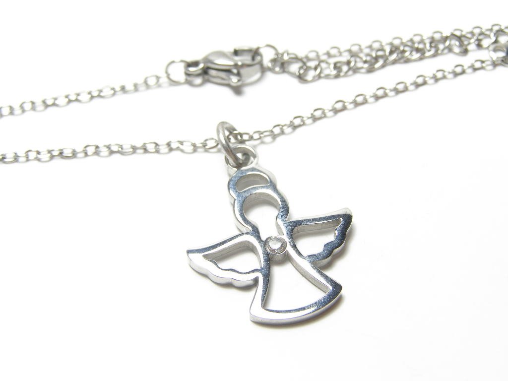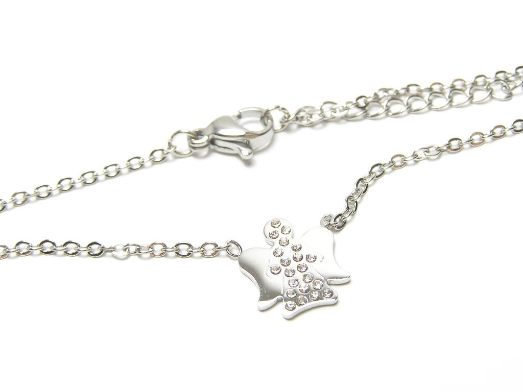 Ocelový náhrdelník s přívěskem-andělíček. Délka jemného řetízku 42-47cm, rozměr přívěsku 20x19mm.