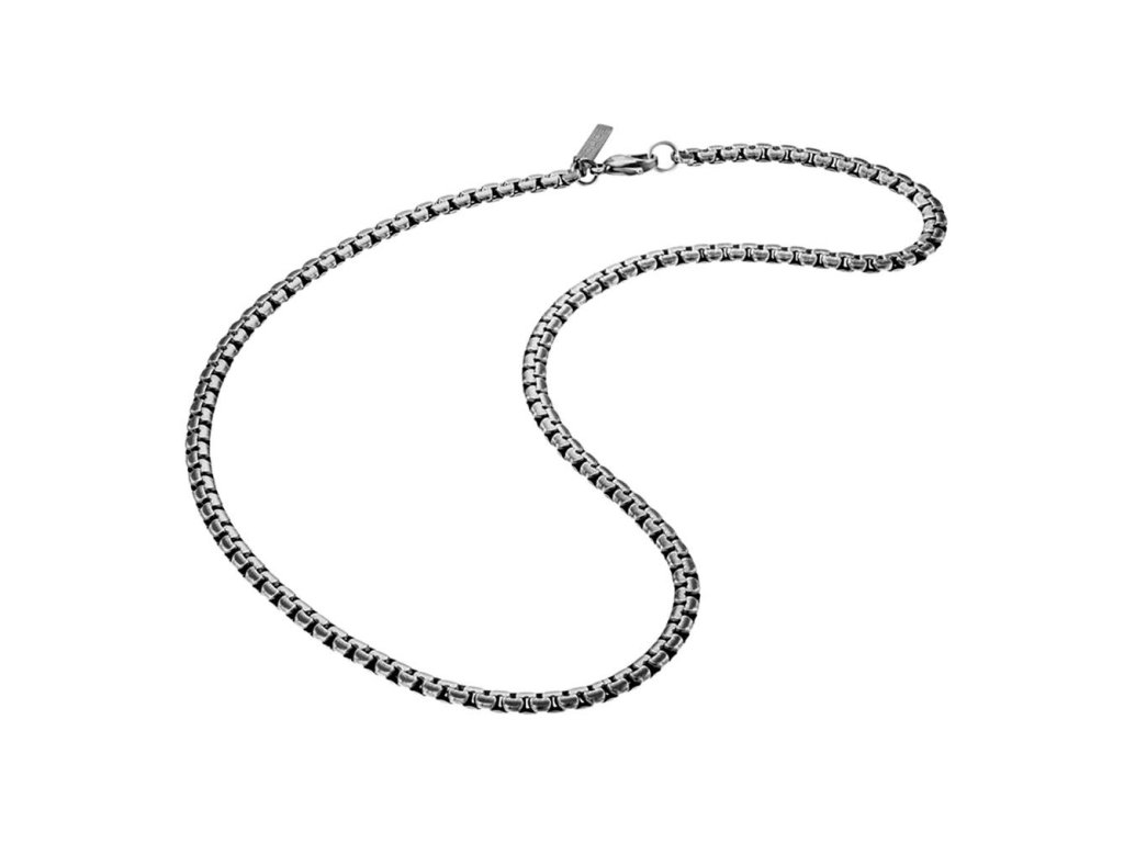 Ocelový unisex náhrdelník POLICE ENGAWA PJ26565PSE/01, v černé povrchové úpravě, délka řetízku 50+20cm, šířka 3mm, destička přívěsek 43x27mm.
