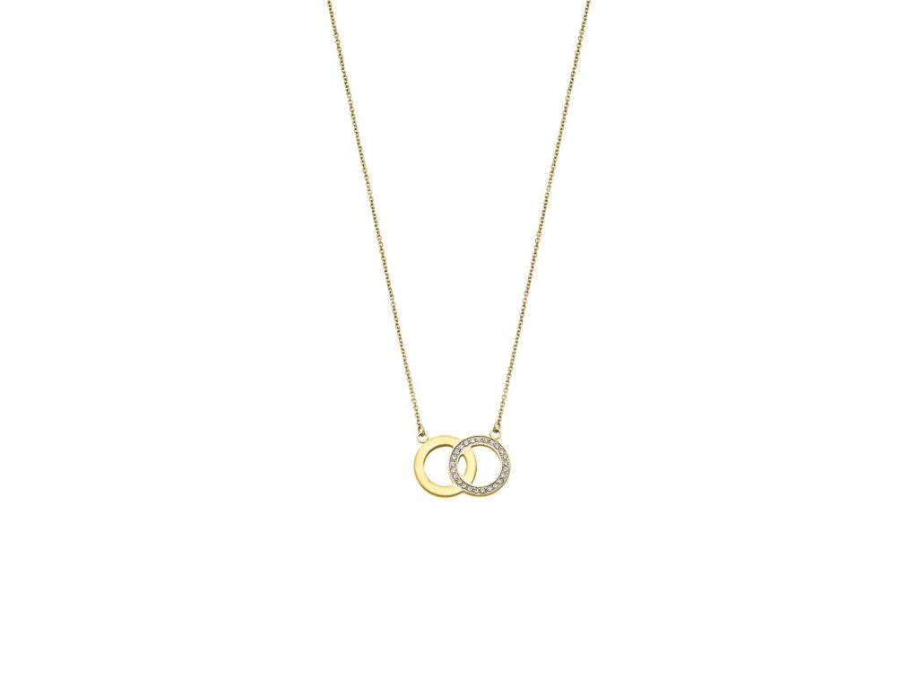 Ocelový dámský náramek LOTUS LS1913-2/3, dva propletené kruhy-jeden se zirkony, mezi zdvojeným řetízkem, nastavitelná délka náramku až 20 cm, průměr kruhu 14mm, ve zlacené povrch.úpravě. Možnost kombinovat s náhrdelníkem ORE0000530 a náušnicemi ONU00559.