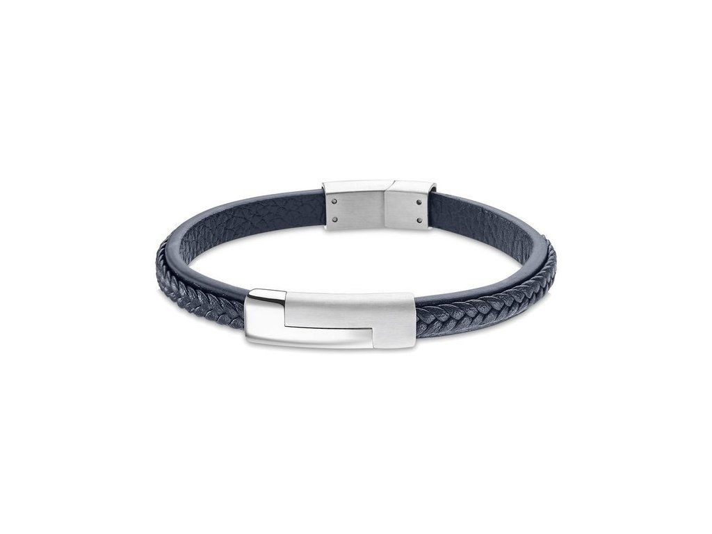 Ocelový unisex kožený náramek LOTUS LS1965-2/2 s ozdobným lesk-mat prvkem, zapínání na sponu-nasunutí, nastavitelná délka náramku až 20cmv tmavě modré barvě.