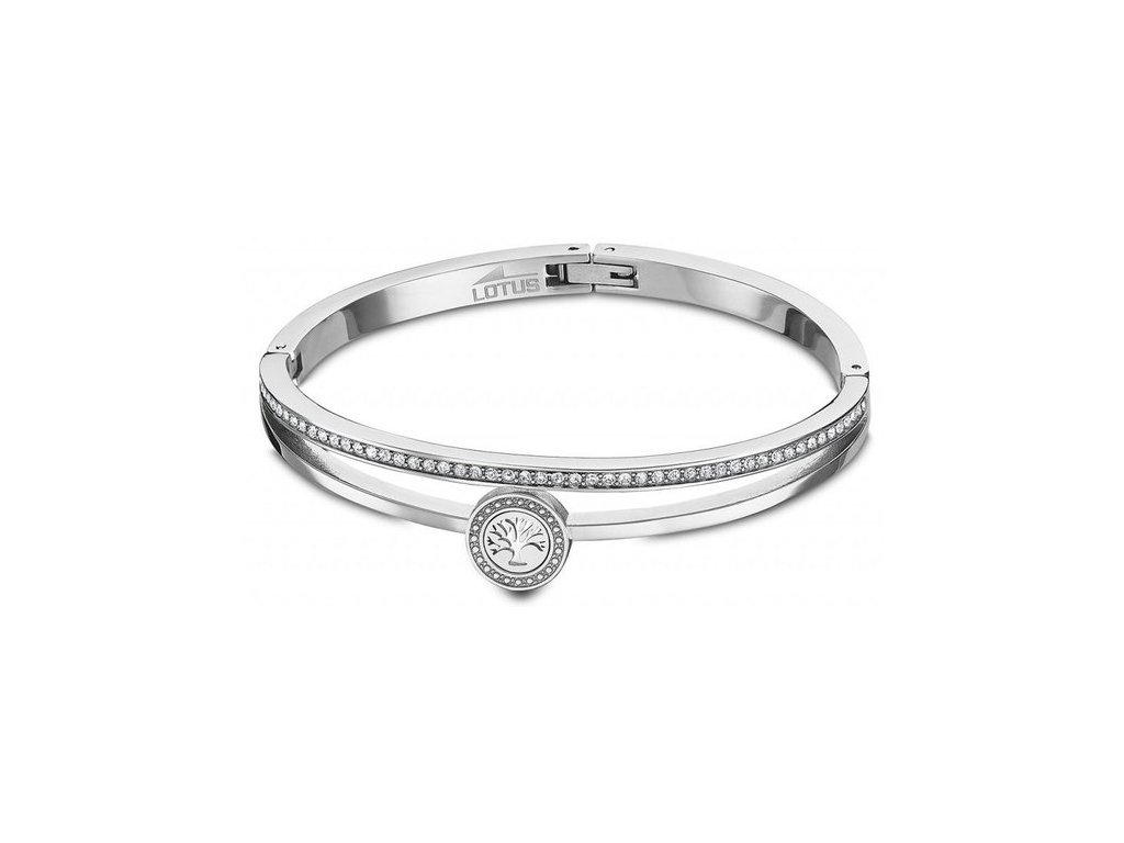 Ocelový dámský náramek LOTUS LS2088-2/3-dvojitý kruh na rozevření, ozdobený stromem života, průměr stromu 11mm, průměr kruhu 6cm, šířka kruhu 18mm.