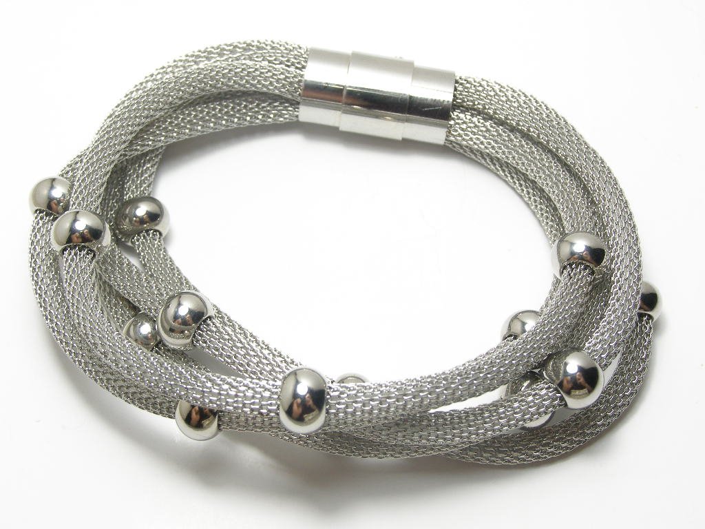 Ocelový náramek složený z pěti lanek s kuličkami, délka náramku až 20cm, šířka až 15mm.
