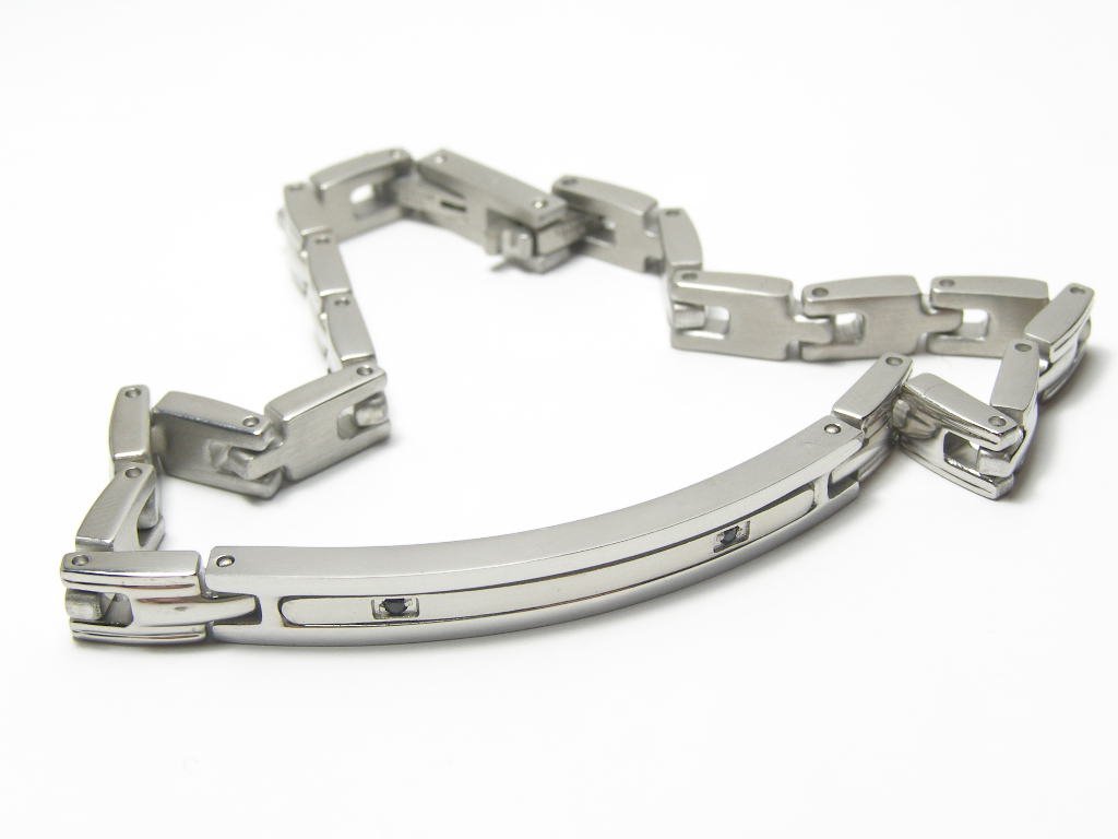 Ocelový unisex náramek s destičkou uprostřed, délka náramku až 21cm, síla náramku 5mm.