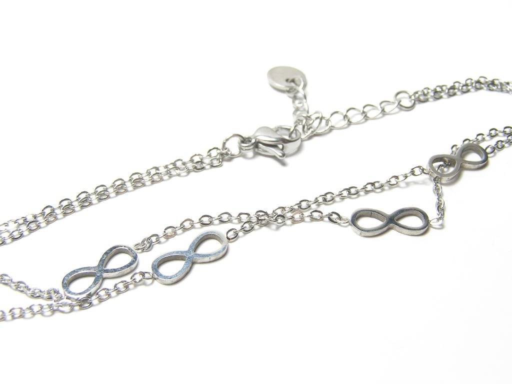 Ocelový zdvojený dámský náramek s nekonečnem, délka náramku 18cm.