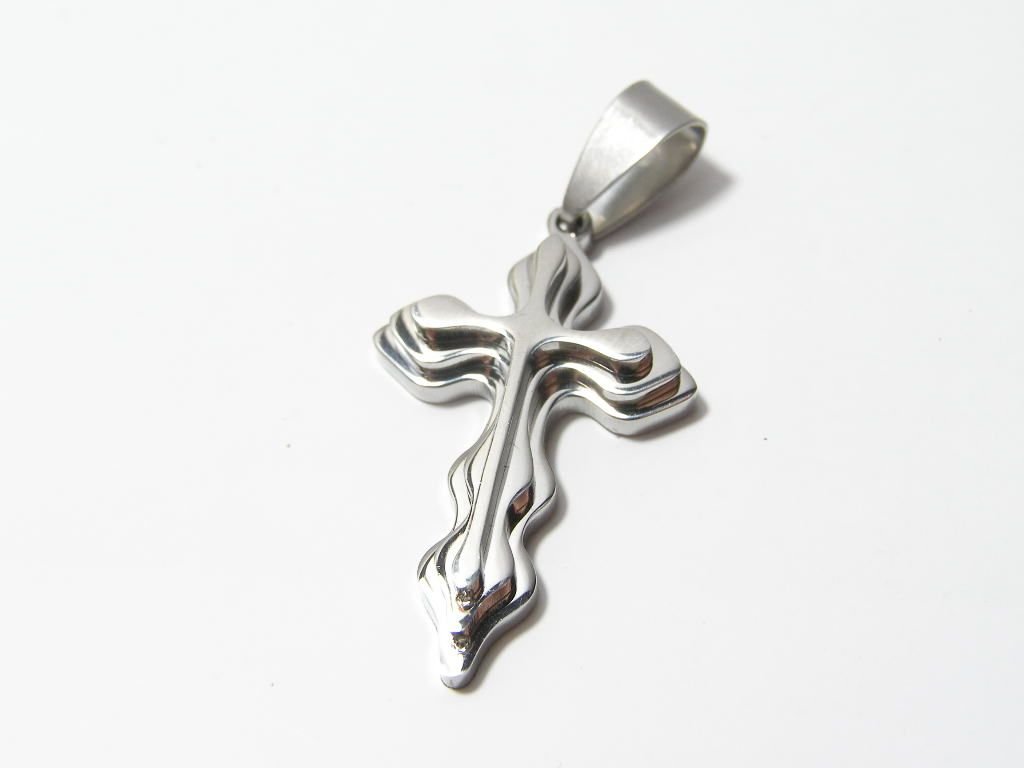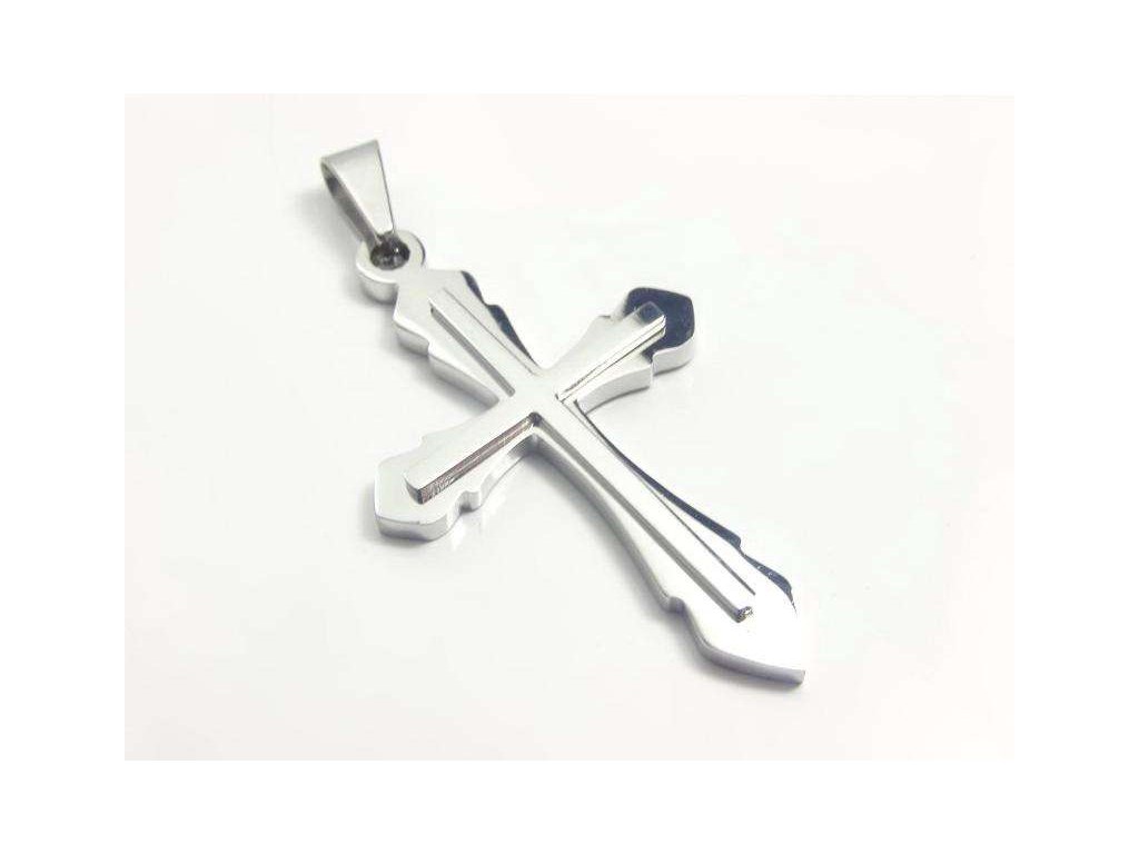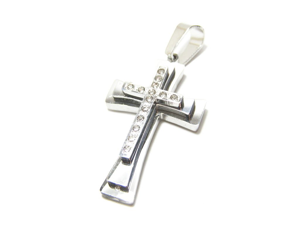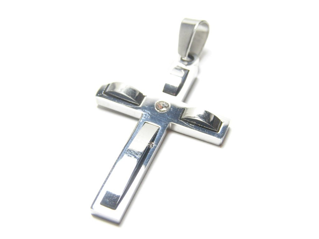 Ocelový přívěsek-křížek se zirkonem. Rozměr 35x22mm.