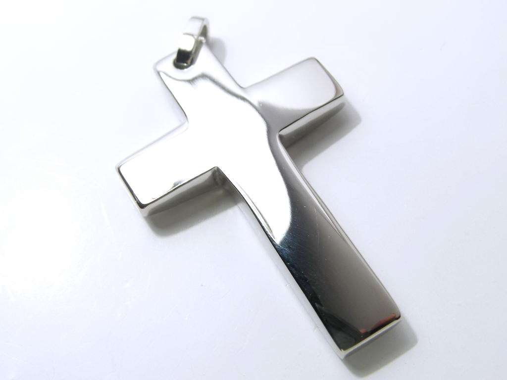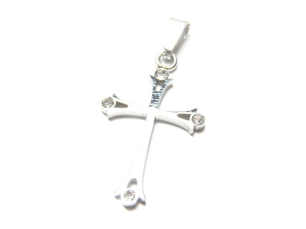 Ocelový přívěsek ve tvaru kříže se zirkony. Rozměr 35x16mm.