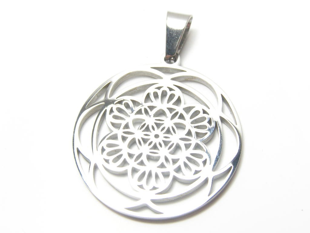 Ocelový přívěsek ve tvaru kytičky, hladký, jednoduchý obrys. Průměr 30mm.