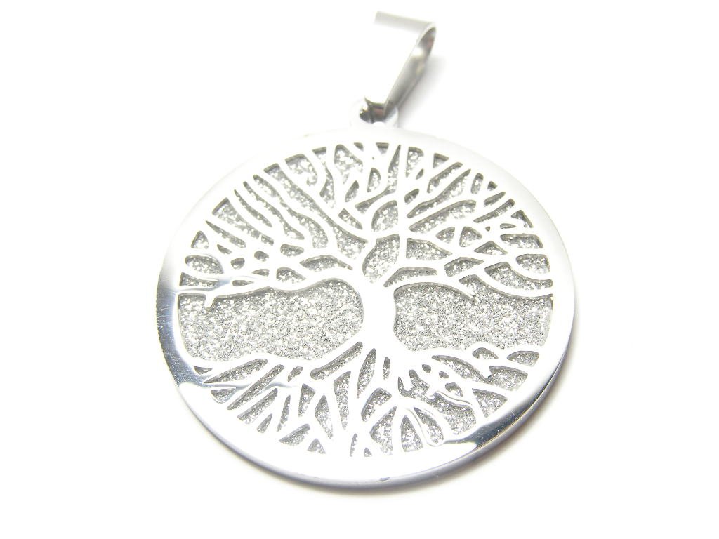 Ocelový přívěsek-"strom života", v lesklé povrchové úpravě. Průměr přívěsku 30mm.