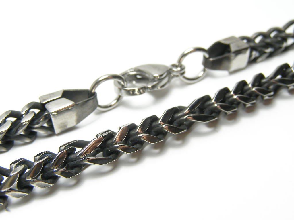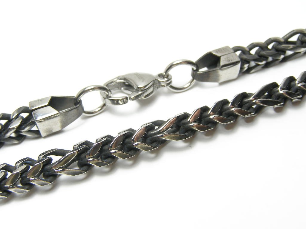 Ocelový masivní řetízek. Délka náhrdelníku 55cm, šířka 5mm, z profilu hranatý, v černé povrchové úpravě.