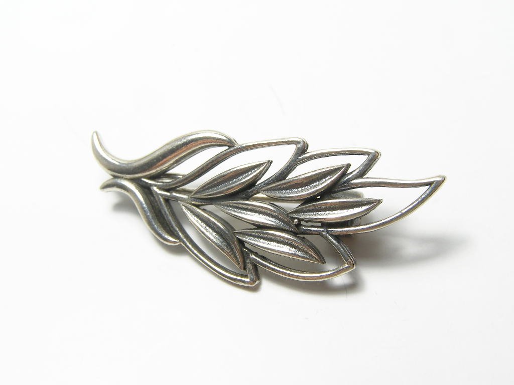Stříbrná brož - lístek, větvička. Rozměr 36x15mm.