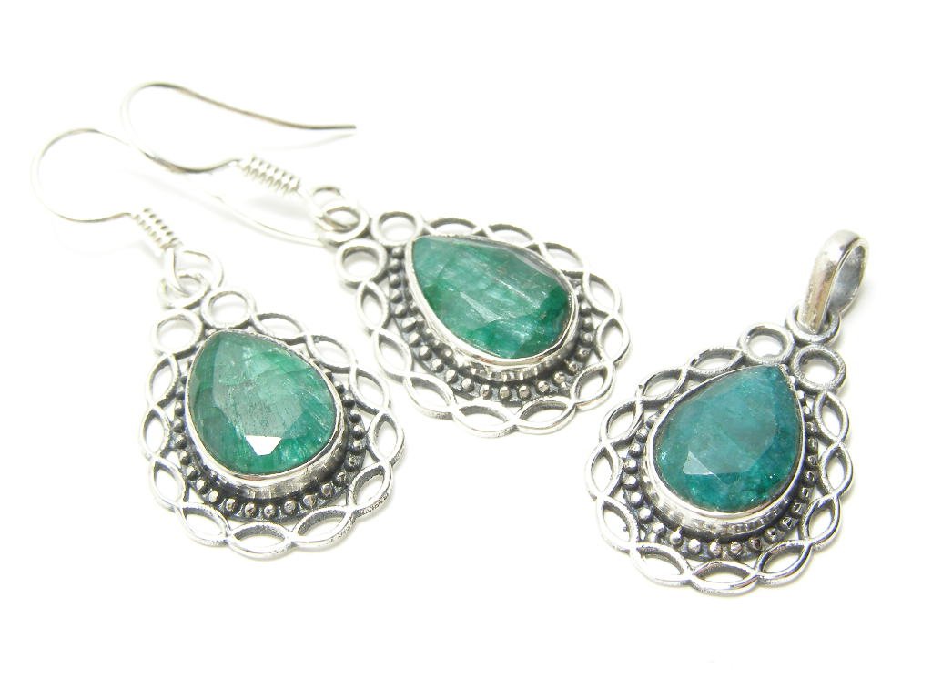 Stříbrná souprava-náušnice s přívěskem se smaragdem