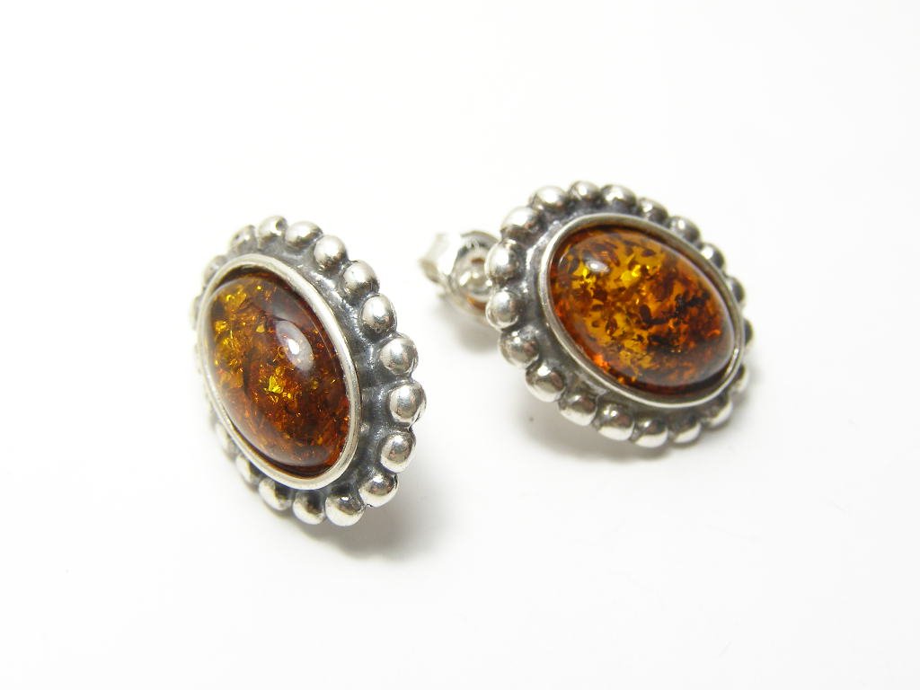 Stříbrné náušnice kombinované s jantarem, zapínání na puzetu, kulatý jantar zafasovaný ve starostříbrné obrubě, rozměr náušnice 14x26mm. Možnost kombinovat s přívěskem ZK00896.