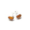 Stříbrné náušnice kombinované s jantarem, zapínání na puzetu, trojúhelníkový jantar zafasovaný v hladké obrubě, rozměr náušnice 5x5mm.