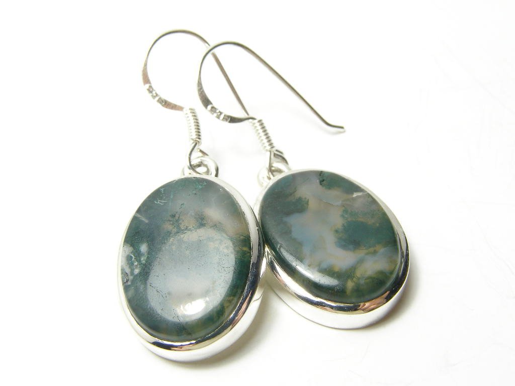 Stříbrné náušnice se zapínáním na háček v hladké obrubě s mechovým achátem, délka náušnice 35mm, šířka 15mm. Možnost kombinovat s náramkem, prstenem a přívěskem ZK00550.
