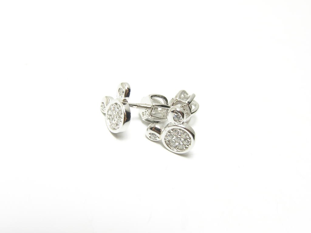 Stříbrné náušnice s bílým zirkonem -Micky Mouse, rozměr 7x6mm, na šroubek.