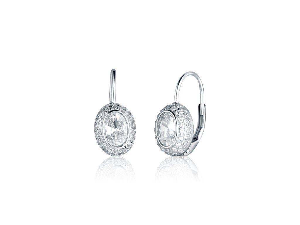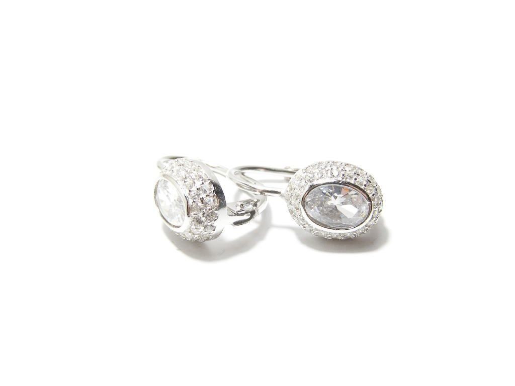 Stříbrné náušnice s jedním centrálním oválným krystalem a zirkonky po obvodu. Délka náušnice 15mm, šířka 7mm.