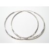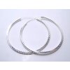 Stříbrné náušnice kruhy se zapínáním do dutinky, výrazně poryté šrafováním. Průměr náušnice 40mm, šířka 1,5mm, z profilu hranaté.