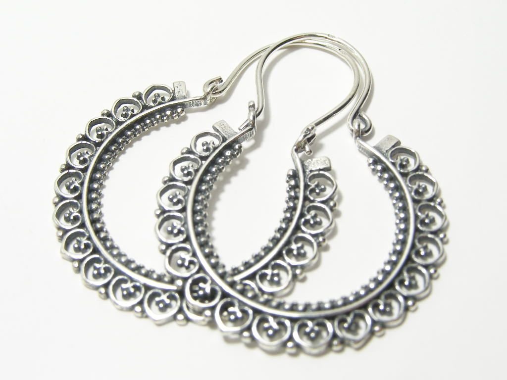 Stříbrné náušnice kruhy (starostříbro) se zapínáním na provlečení. Průměr 32mm.