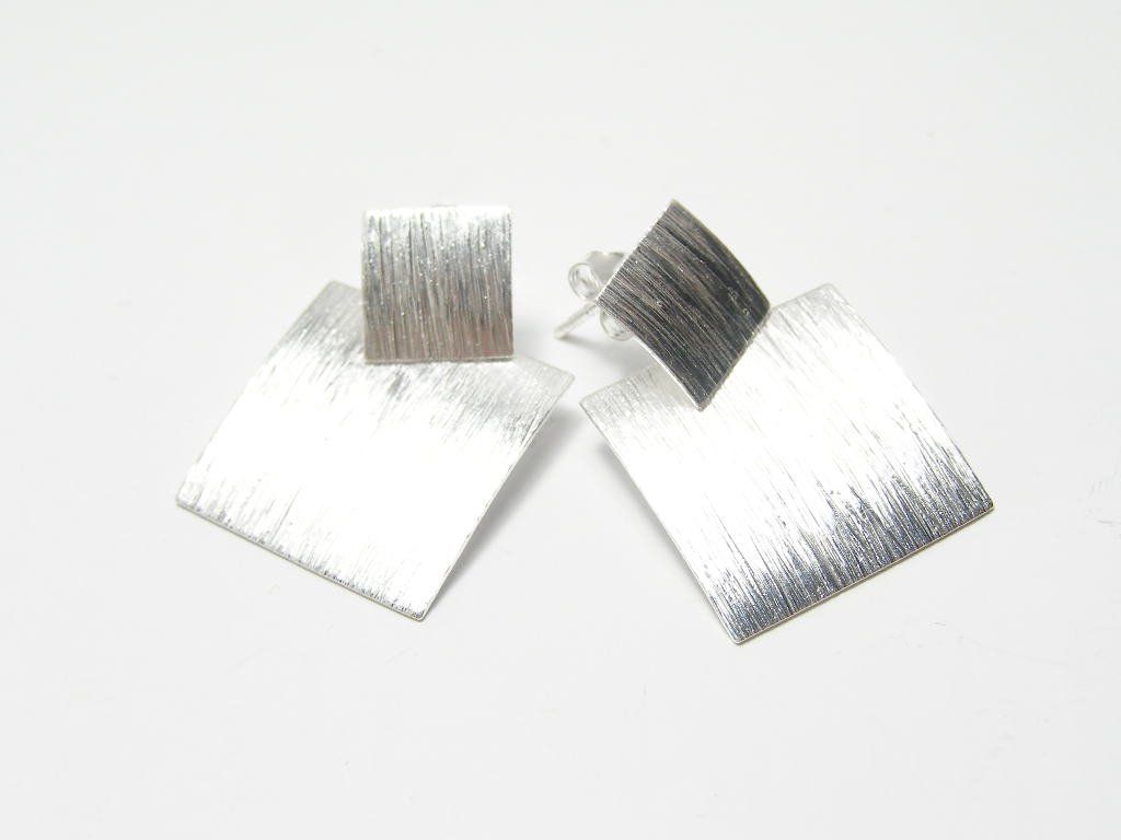Stříbrné visací náušnice čtverec na puzetu, rozměr čtverce 17mm a 9mm.