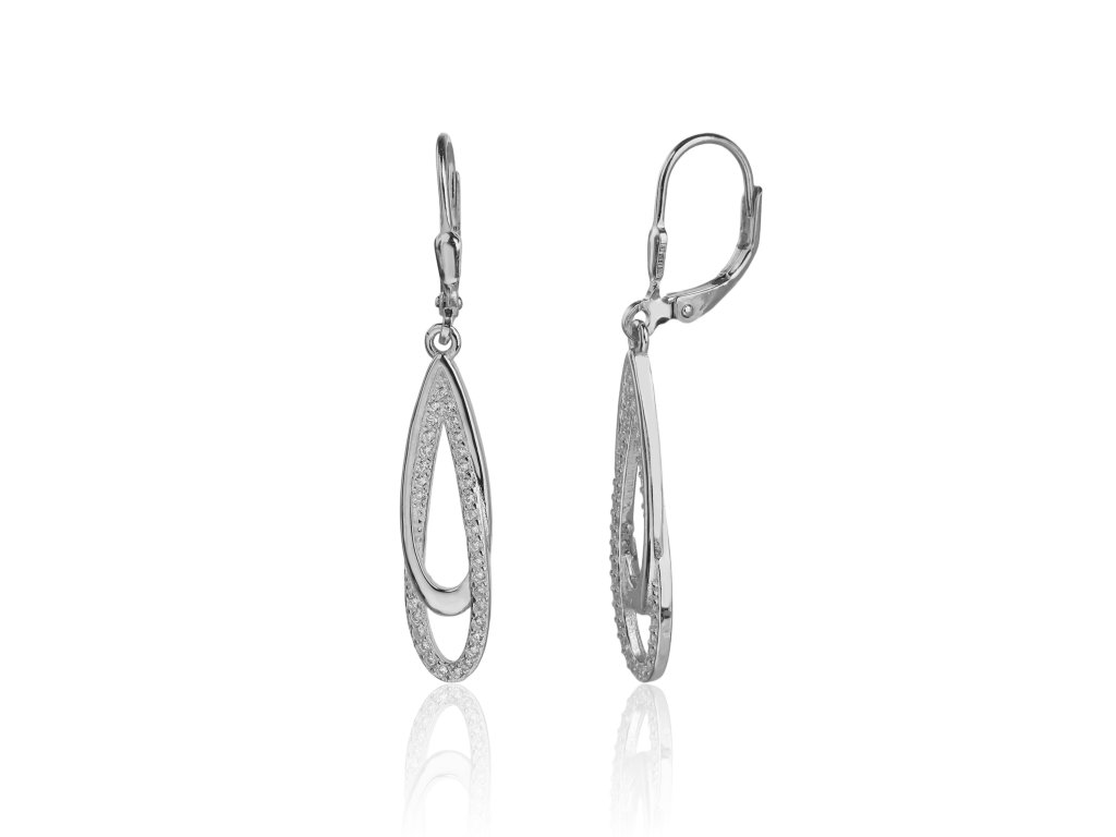 Stříbrné visací náušnice ve tvaru slzy se zirkony, délka náušnice 40mm-vč.zapínání, šířka 6mm.