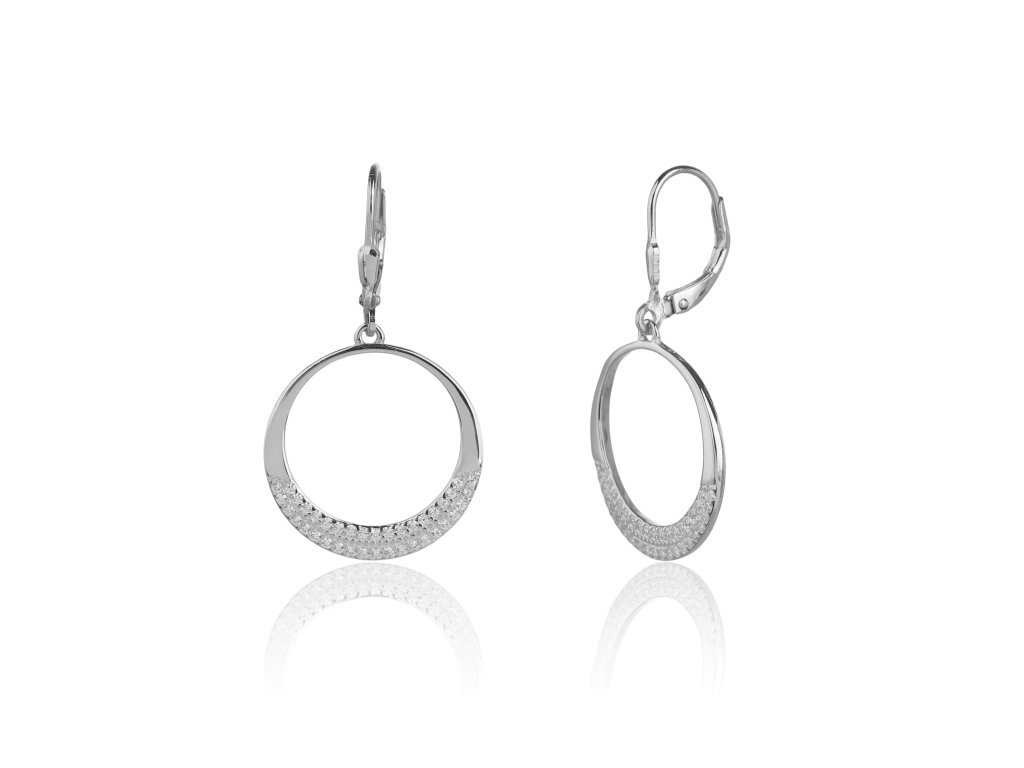 Stříbrné visací náušnice kruh se zirkony, délka náušnice 36mm-vč.zapínání, průměr závěsu 18mm.
