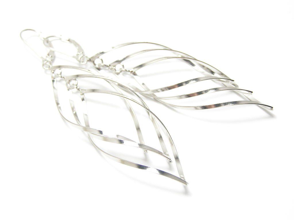 Stříbrné visací náušnice ve tvaru spirály, délka náušnice 73mm-vč.zapínání, šířka 18mm.