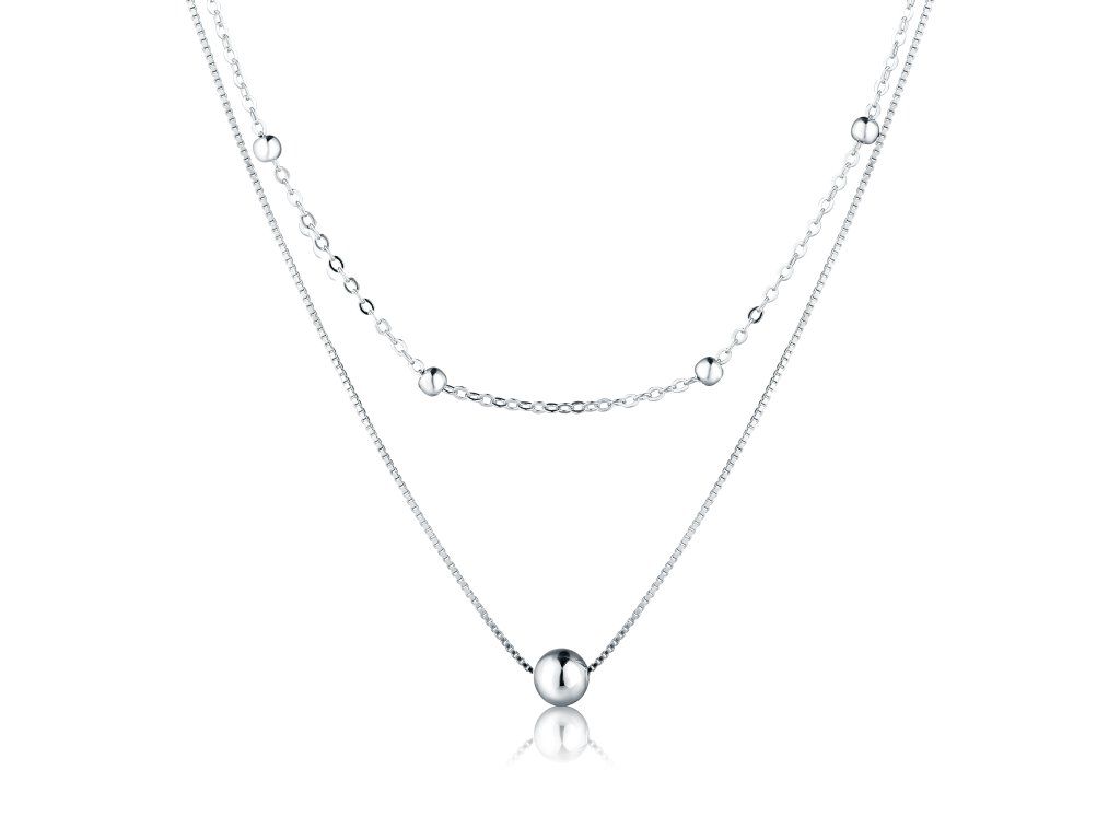 Stříbrný dámský zdvojený náhrdelník ozdobený kuličkami. Nastavitelná délka 45 + 3cm.