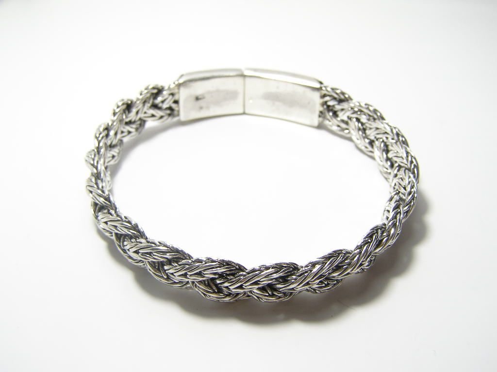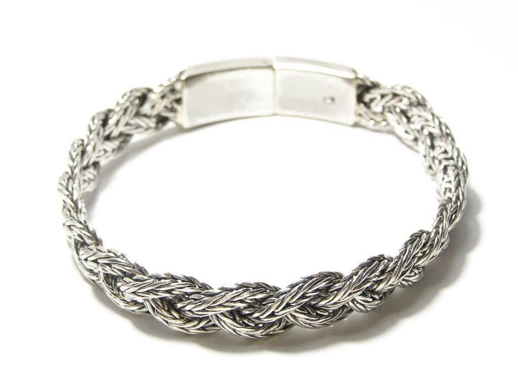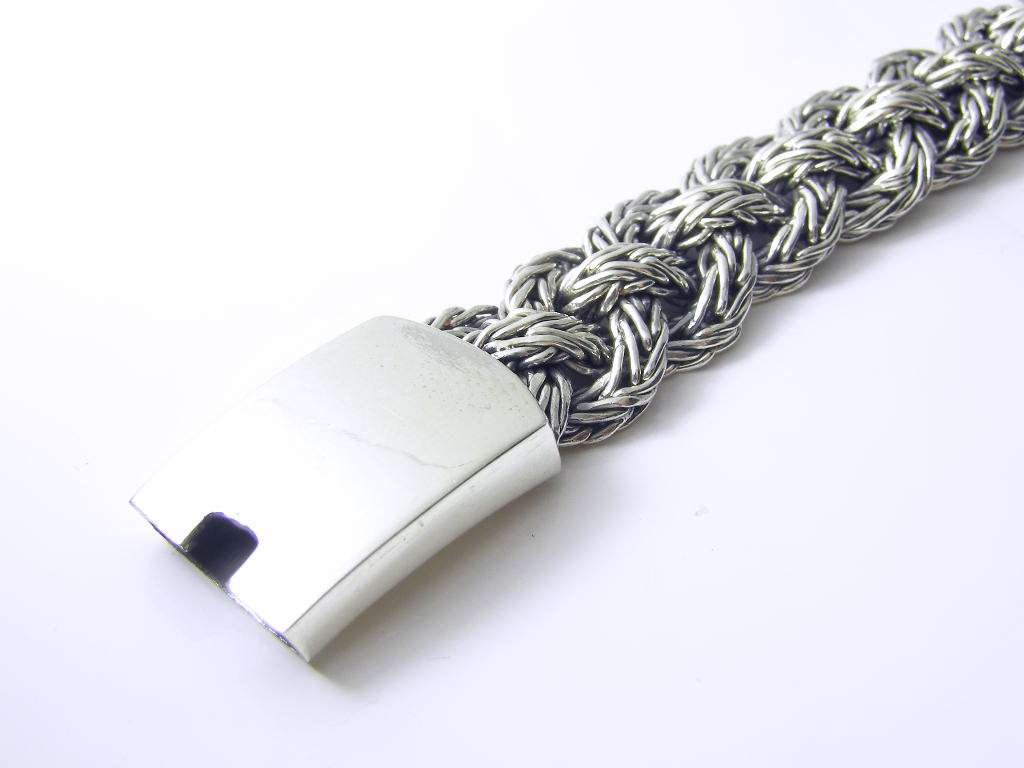 Starostříbrný náramek-copánek splétaný ze dvou pramenů, délka 20cm, šířka 10mm.