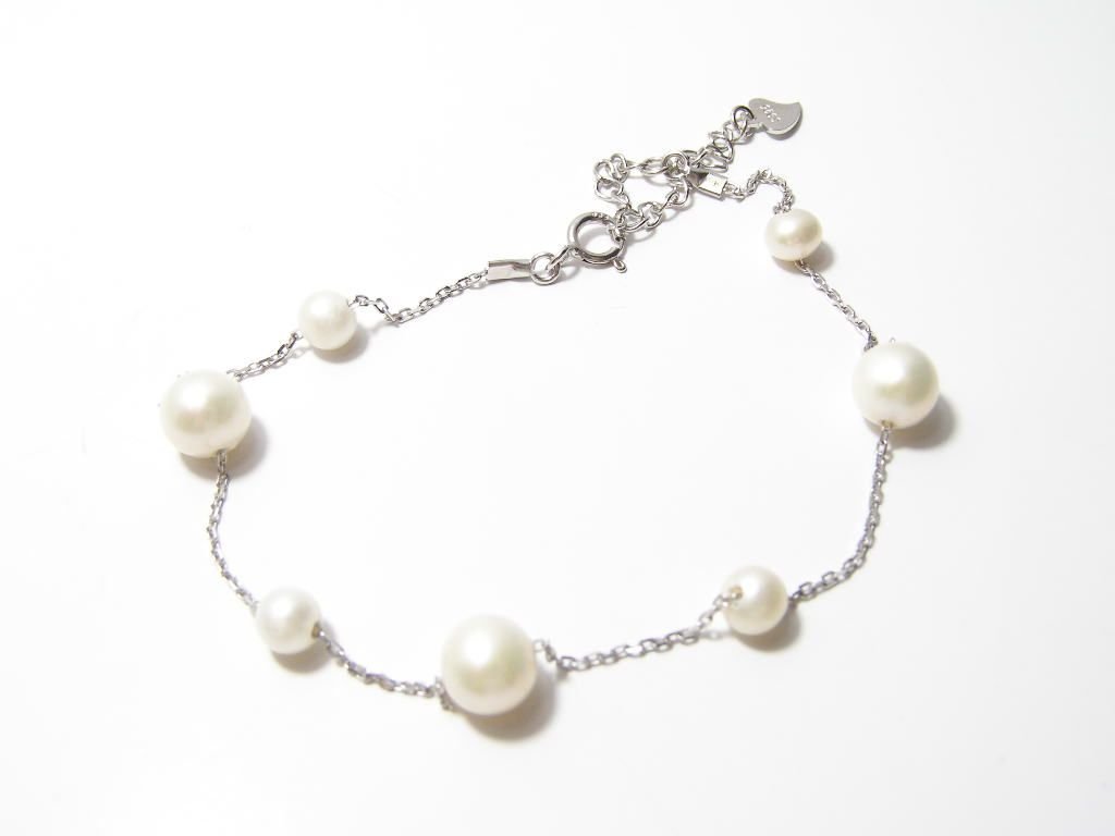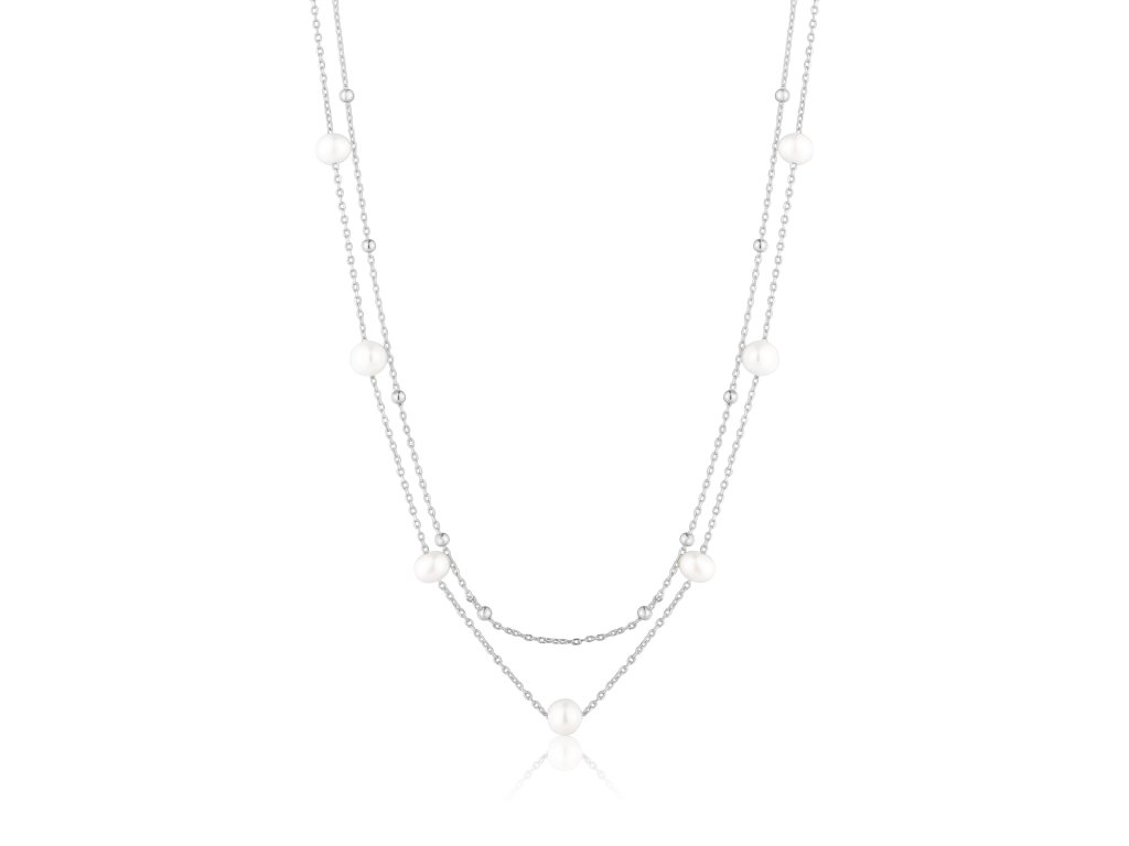 Stříbrný zdvojený náramek ozdobený perličkami (certifikát) dvou velikostí, nastavit.délka 16,5-21cm. Možnost kombinovat s náhrdelníkem RK00058.
