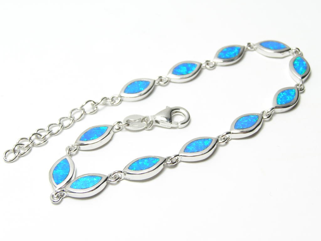 Stříbrný náramek bohatě ozdobený opály, délka 16-19cm, šířka 4mm.