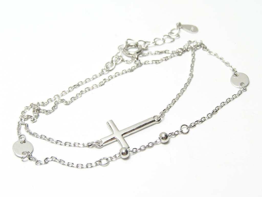 Stříbrný zdvojený náramek s křížkem a kolečky, nastav.délka až 17-20cm, rozměr křížku 15x9mm.