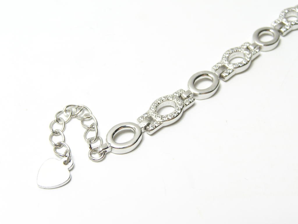 Stříbrný náramek ozdobený články se zirkony ve tvaru oválu, délka 17-19,5cm.