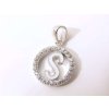 Stříbrný přívěsek - smaltované písmeno v kulaté, zirkonové obrubě, průměr přív. 14mm. Výběr písmen-C,G,O.