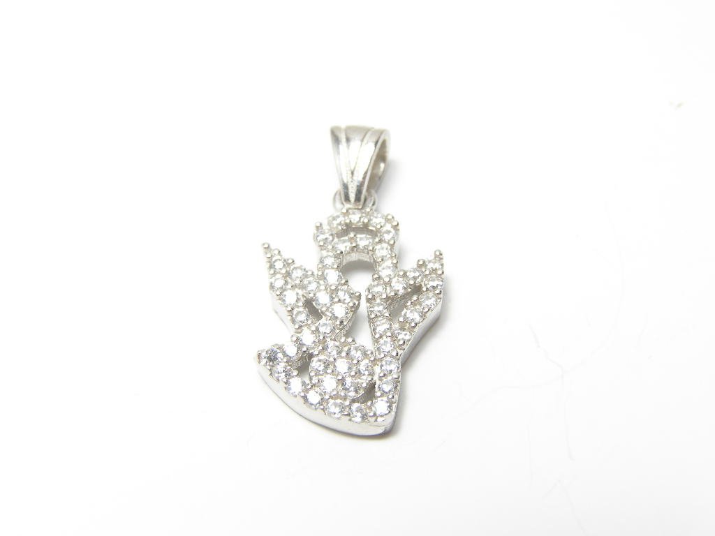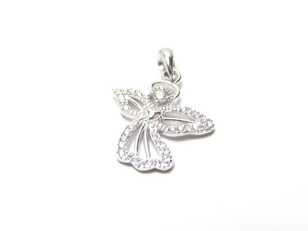 Stříbrný přívěsek-andělíček, ozdobený bílými zirkony, rozměr 24x12mm.