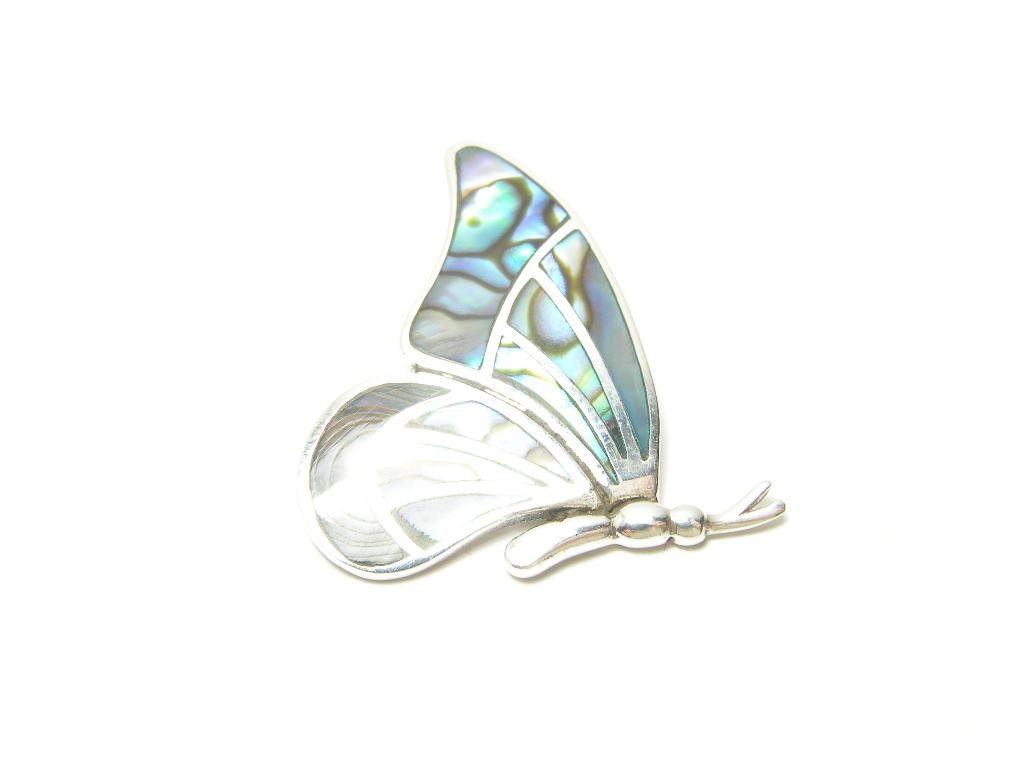 Stříbrný přívěsek - motýl ozbobený perletí, rozměr 25x27mm.