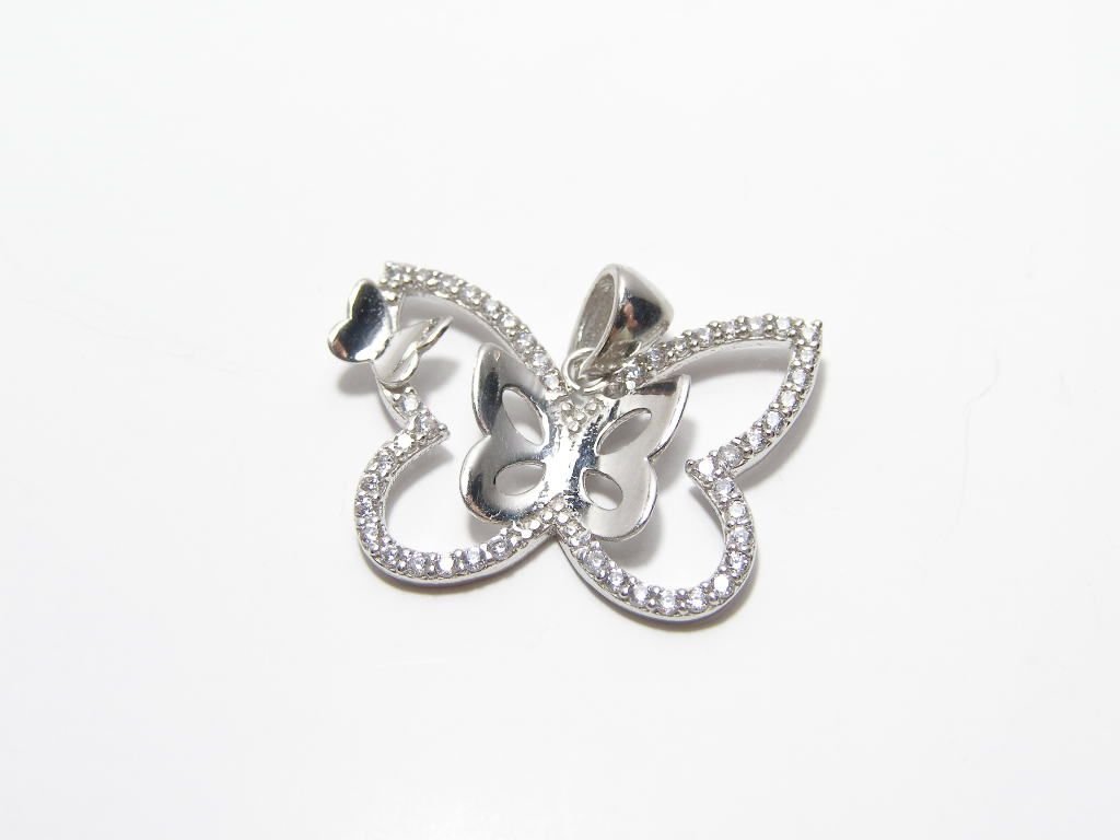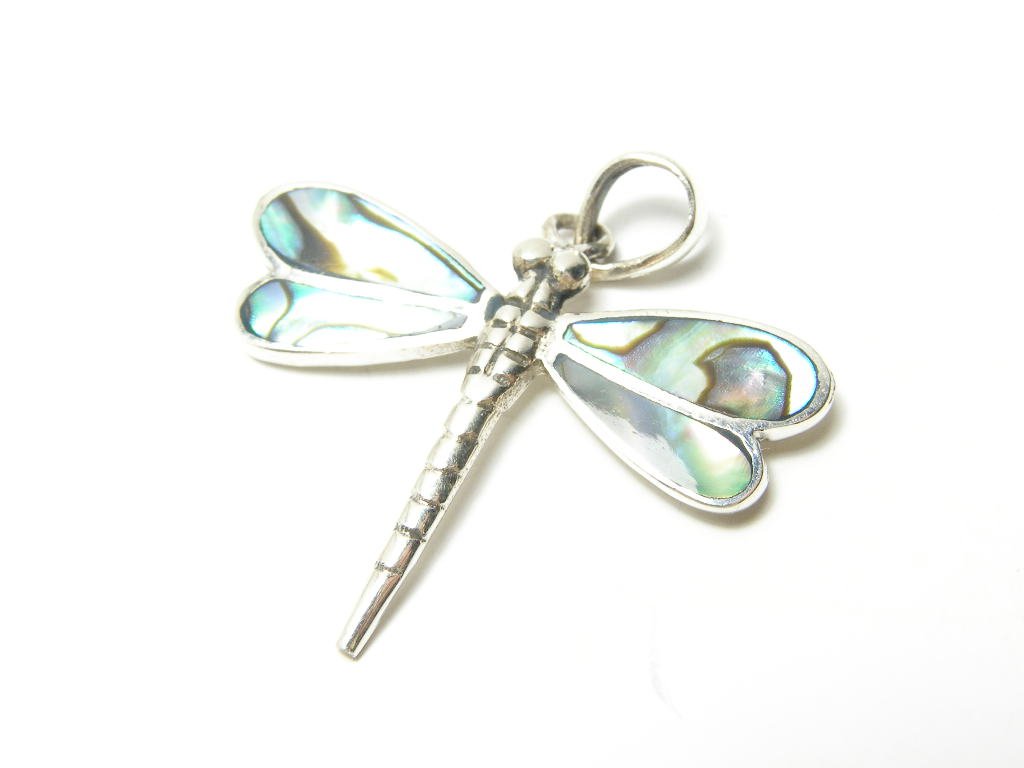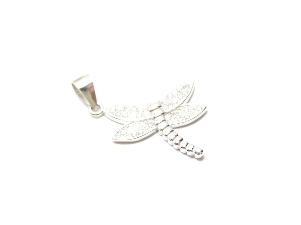 Stříbrný přívěsek vážka ozdobený perletí na křídech, rozměr 30x32mm.