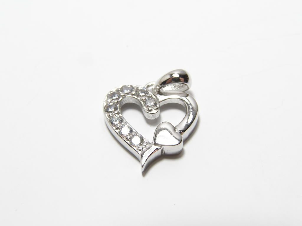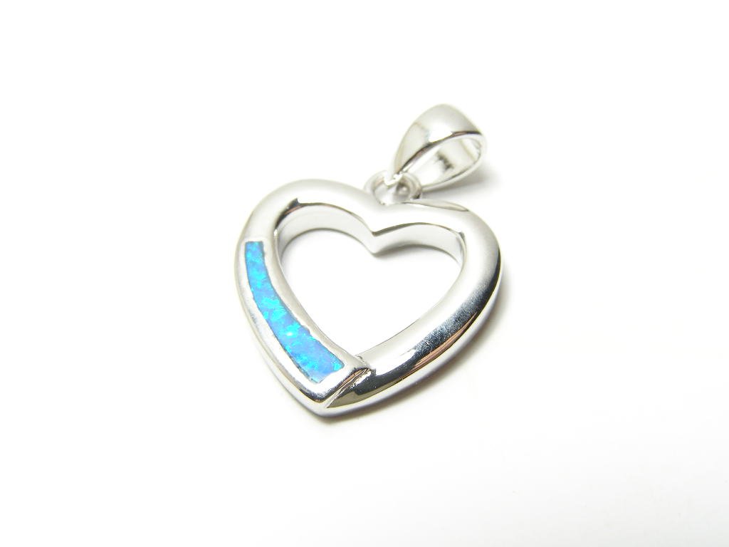 Stříbrný přívěsek ve tvaru srdíčka ozdobený na polovině opálem. Rozměr 22x15mm.