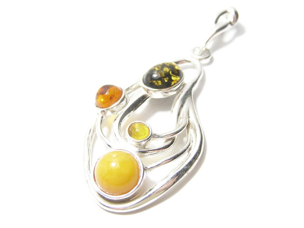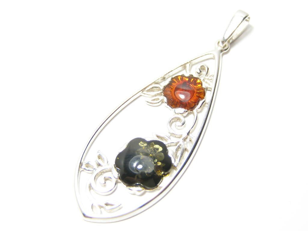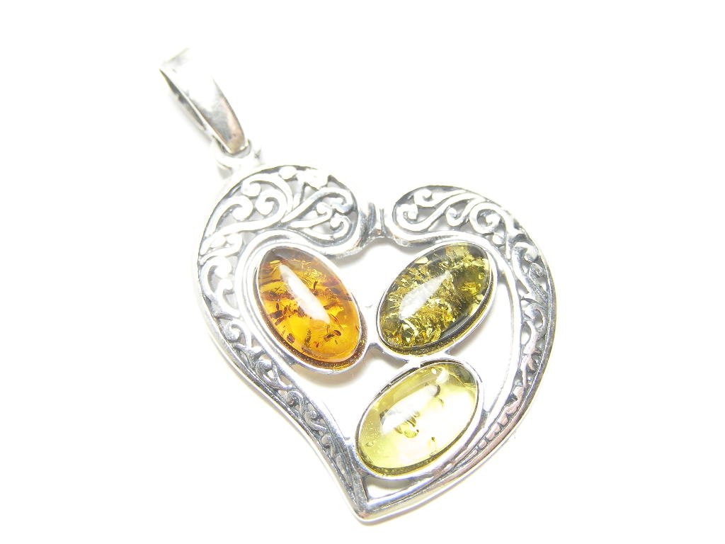 Stříbrný přívěsek srdce s jantary v krásné starostříbrné obrubě, délka vč.závěs.ouška 38mm, šířka 26mm.