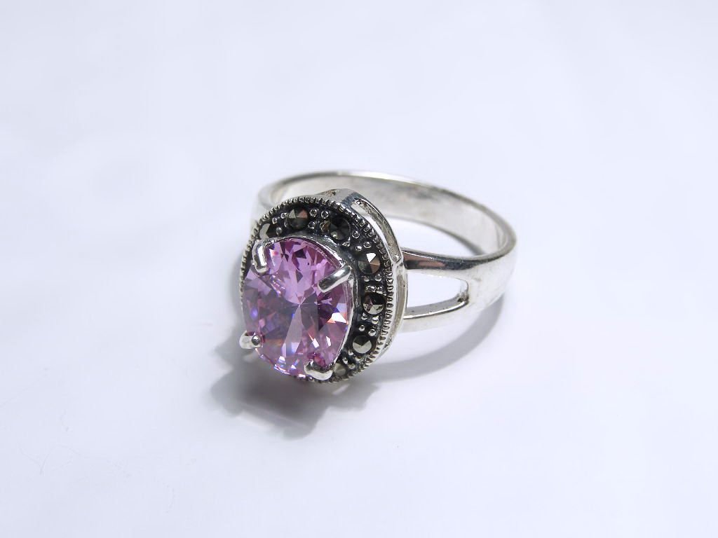 Stříbrný elegantní prsten s růženínem- vel.56. Rozměr prstenu 15x11mm.
