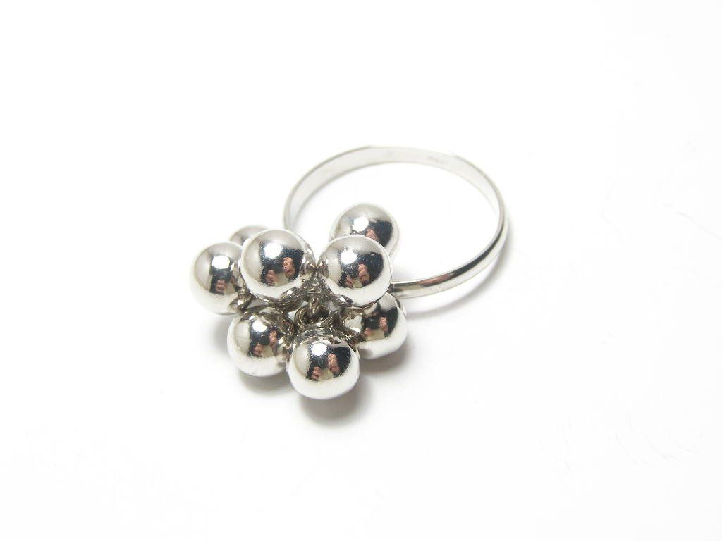Stříbrný hladký prsten ozdobený zavěšenými kuličkami-8ks, průměr kuličky 4mm, vel.56.
