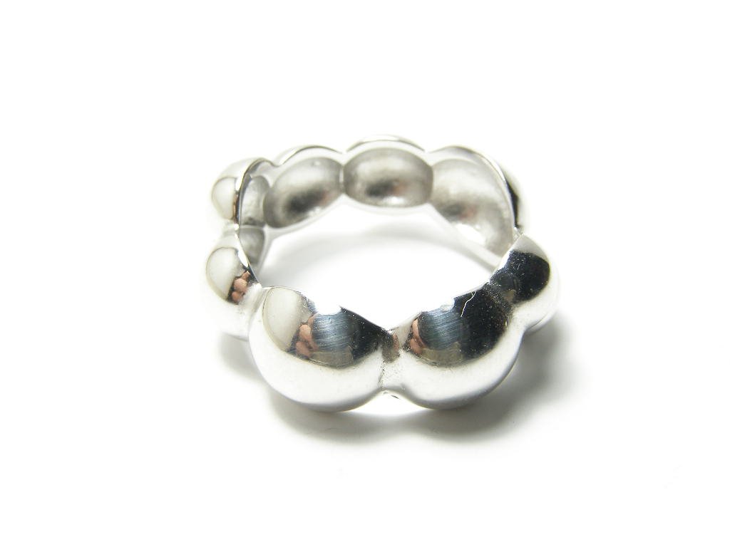 Stříbrný prsten bohatě zdobený kuličkami, šířka prstenu 8mm, velikost prstenu 52-53.